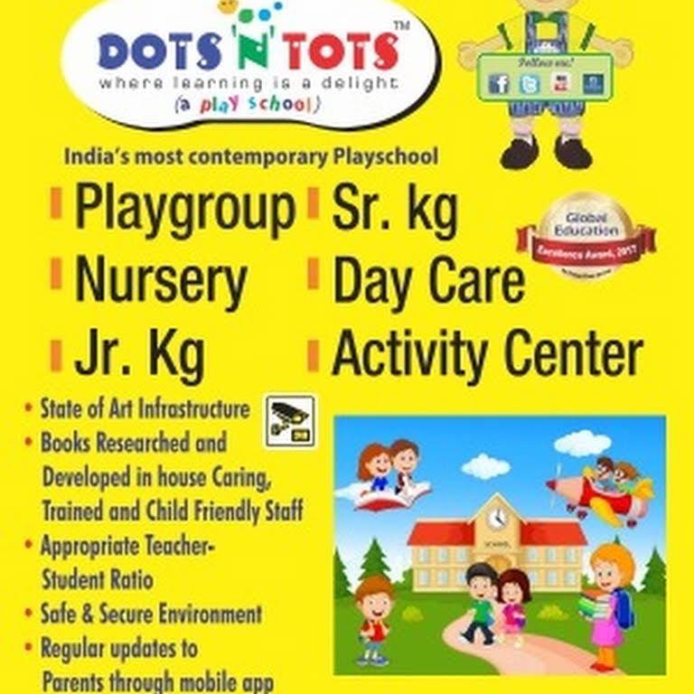 Dots N Tots School is a children's playgroup and nursery school that offers day care as well as education from Playgroup to UKG. The curriculum has been developed based on Montessori Method varying ages between 2-6 years.