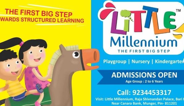 To seek admission for your child in Little Millennium Preschool in Munger HO, you can contact them on the number provided or by personally visiting them during their working hours from Monday: 9:30 am - 1:00 pm, Tuesday:- 9:30 am - 1:00 pm, Wednesday: 9:30 am - 1:30 pm, thu:- 9:30 am - 1:30 pm, Friday:- 9:30 am - 1:30 pm, Saturday:- 9:30 am - 1:30 pm, Sunday:- 9:30 am - 1:00 pm.