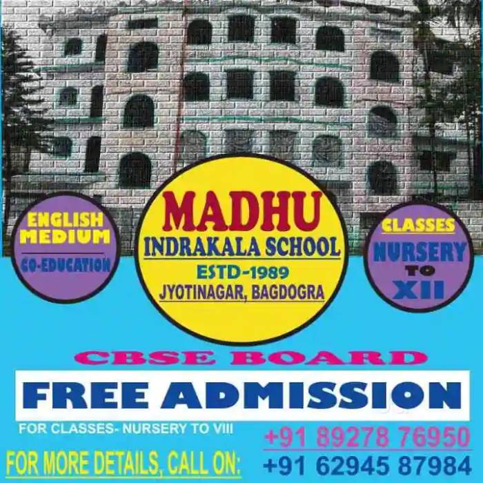A well-known educational institution, Madhu Indrakala School in Bagdogra, Siliguri was founded in the year 1989. This Schools takes pride in the holistic and innovative learning methods which have helped them raise the bar in the field of education. The centre follows a well-researched curriculum that is based on the play way method of learning. This school offers education for children in different age groups. There are a host of other supplementary activities that children can enroll in to ... Read More