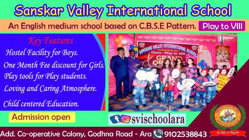 Sanskar Valley International School it is located in Arrah, Anaith, Bhojpur.It is known to provide top service in the following categories: Schools, Kindergartens, Nursery Schools, Playgroups, Montessori Schools, Summer Camps.